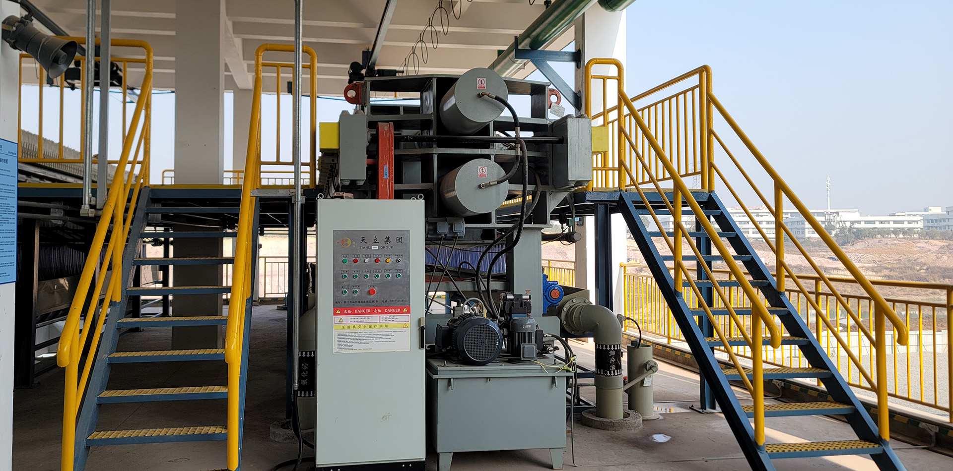 美國(guó)客戶(hù)的高壓隔膜壓濾機(jī)和操作平臺(tái)